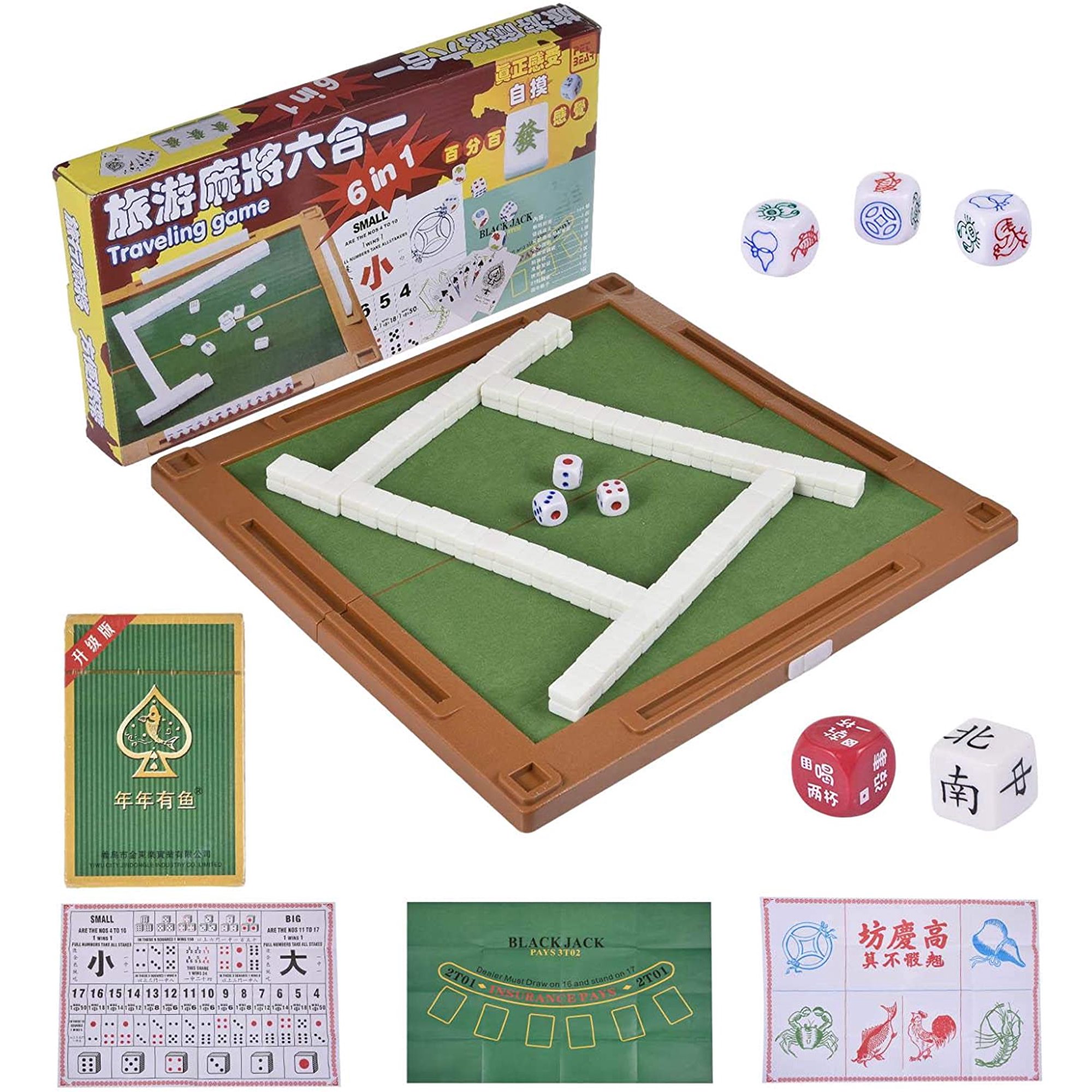 Mini Mahjong Set 6 In 1 Combination Mahjong Board Game Set Portable Indoor Entertainments Board Games With Foldable Game Table Includes Poker Mahjong Sic Bo Dice Game Walmart Canada