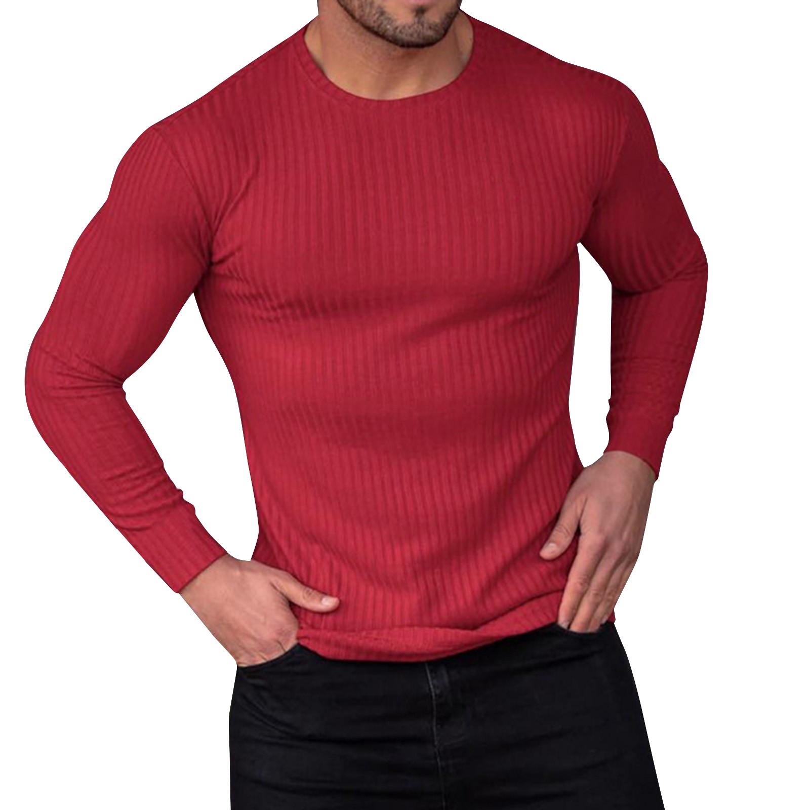 Zhaghmin T Shirt Basic Male Winter And Autumn Casual Striped Fabric T Shirt Round Collar Long Sleeve Tops T Shirt Blouse Turtleneck Men Long Sleeve Hooded T Shirts For Men Workout Shirts